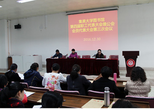 2016年12月30日下午,图书馆四届三次“双代会”在嘉庚图书馆一楼召开,55名图书馆第四届“双代会”代表出席了会议。
